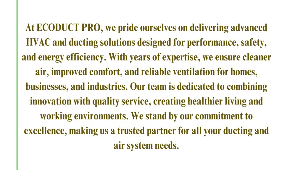 At EcoDuct Cleaning, we put your health, safety, and comfort first. Our team uses advanced equipment and eco-friendly methods to remove dust, allergens, and contaminants from your ducts and vents. With us, you’ll enjoy fresher air, better system efficiency, and peace of mind knowing your home or business is in expert hands.